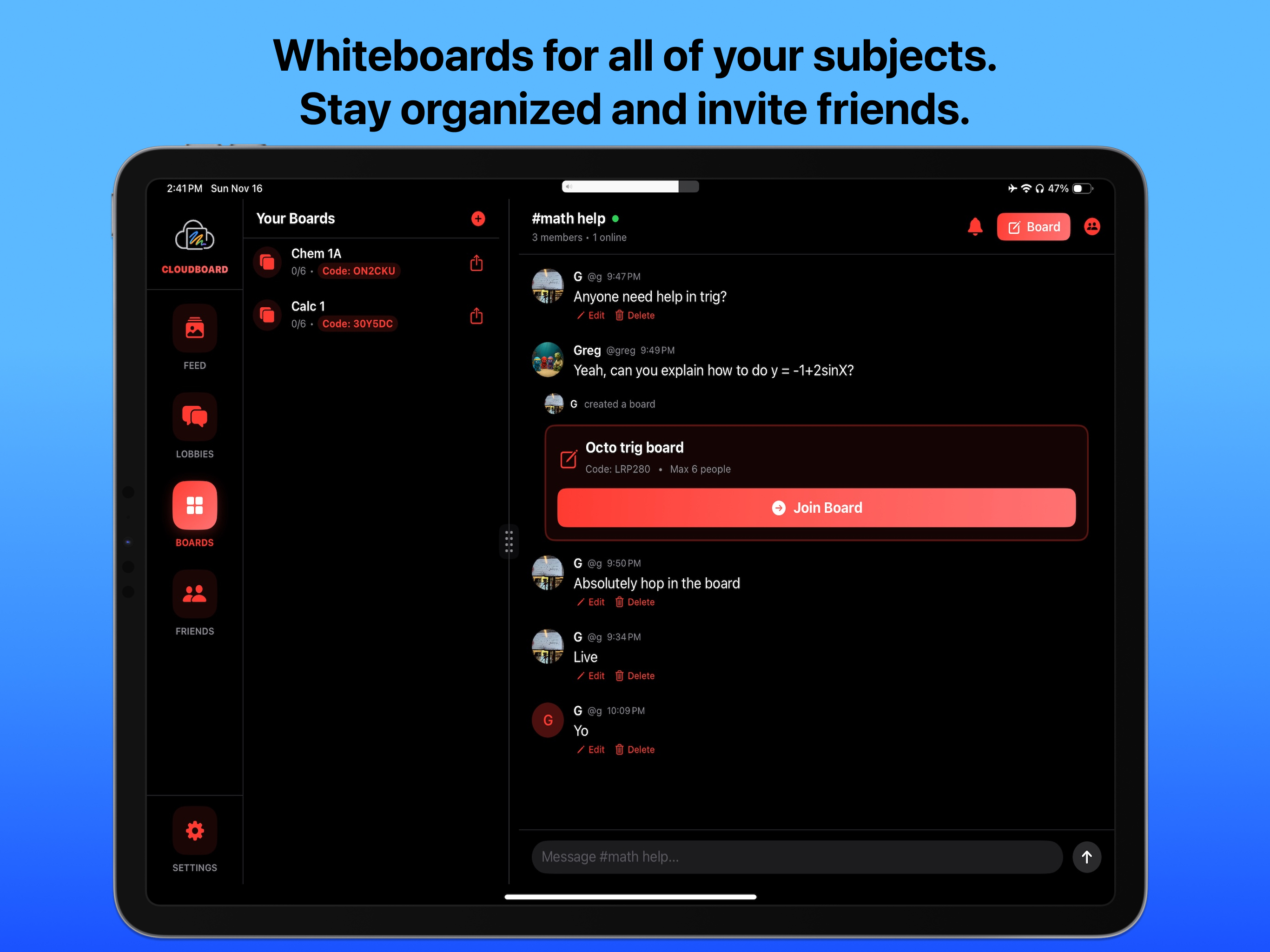 Age 13+: Cloudboard is designed for students age 13 and older. By using Cloudboard, you confirm you meet this age requirement.